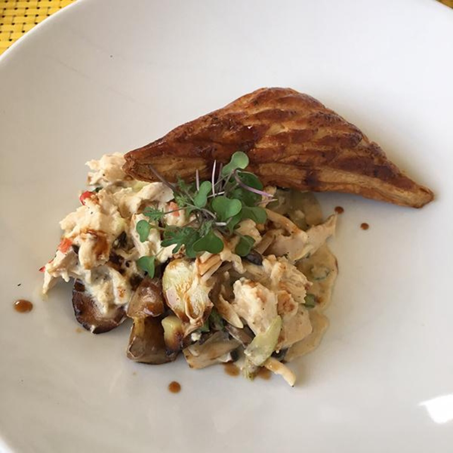 Pop onto the Hobnob Restaurant & Wine Bar patio for a glass of wine and a little comfort food—such as a light mock chicken pot pie or parmesan-and-truffle mac and cheese.