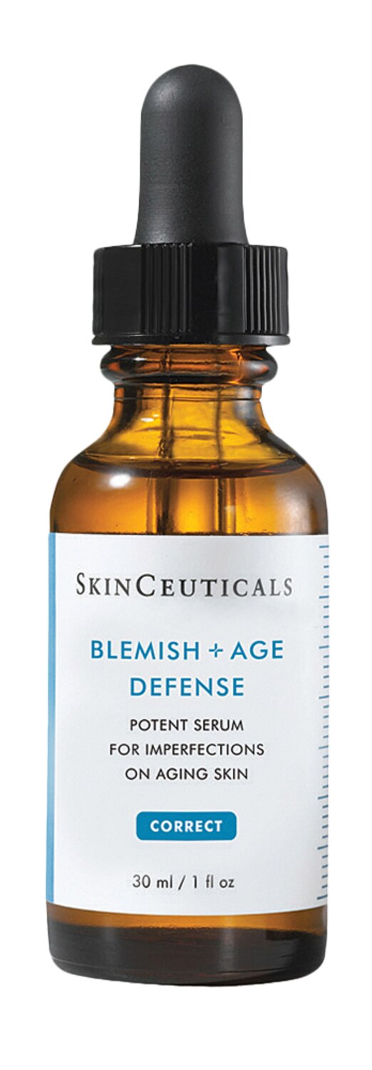 Ifd you're in need of a product what brightens skin while also treating blemishes, SkinCeuticals Blemish + Age Defense is your one-two punch. The oil-free blend has two percent dioic acid (to decrease sebum production) and a combo of alpha- and beta-hydroxy acids, which helps reduce acne while improving uneven skin tone. $100, skinceuticals.ca.