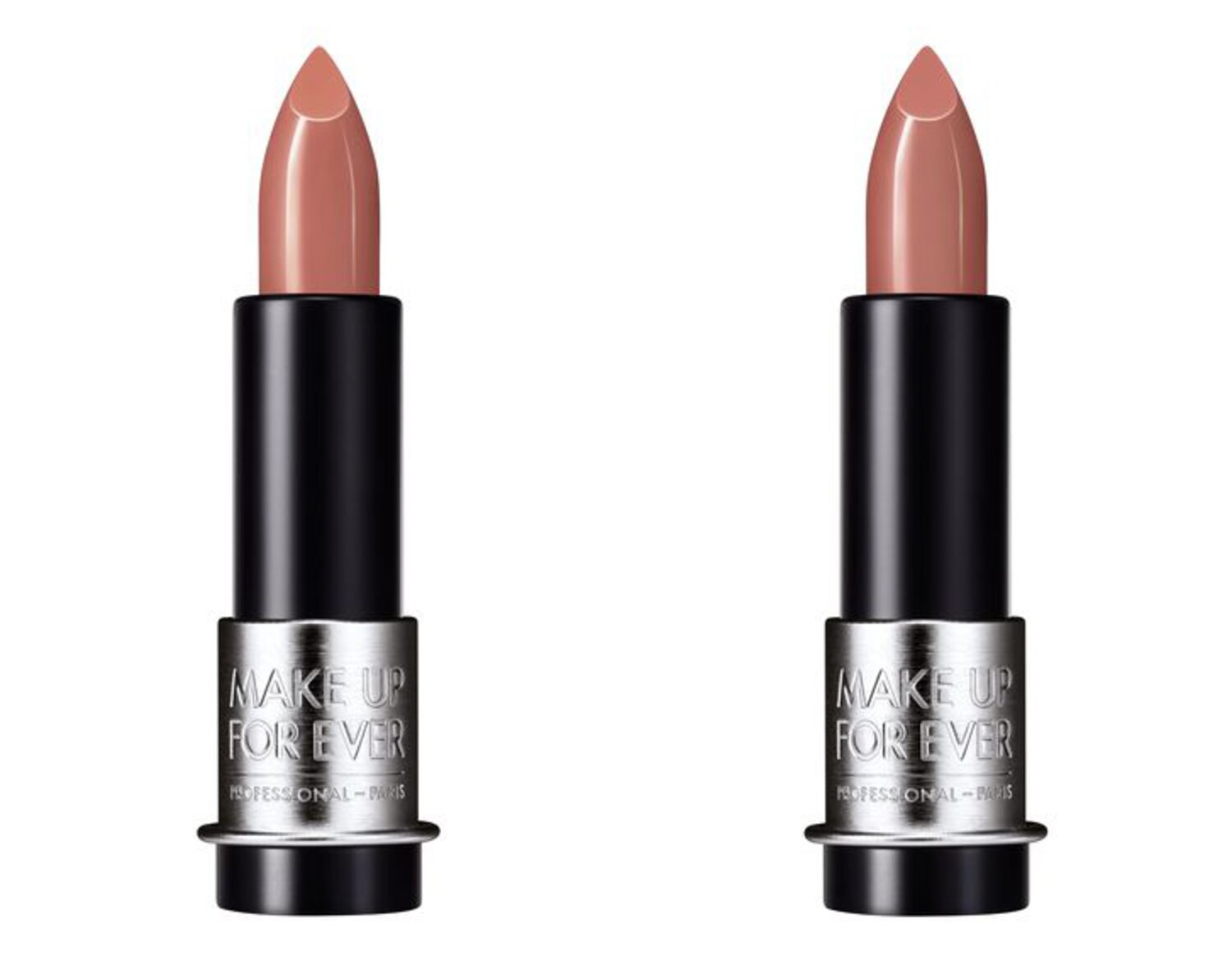 The two nudes lipsticks are universally flattering because of their neutral undertones. They're also matte but super comfortable on the lips. Shade M100 (L) works for lighter skinstones while M101 (R) is perfect for medium and darker tones.