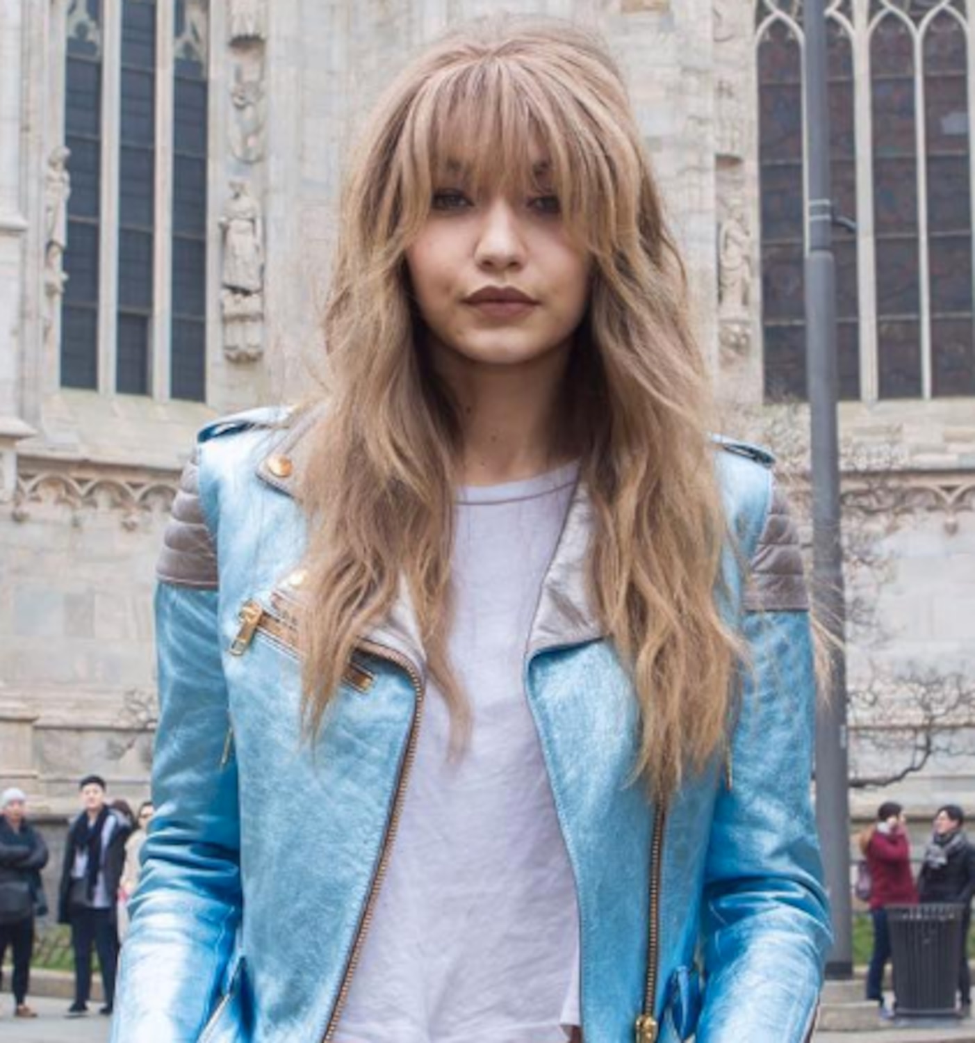 Gigi tries out bangs at a Milan event for her collaboration with Tommy Hilfiger and looks amazing, as always.
