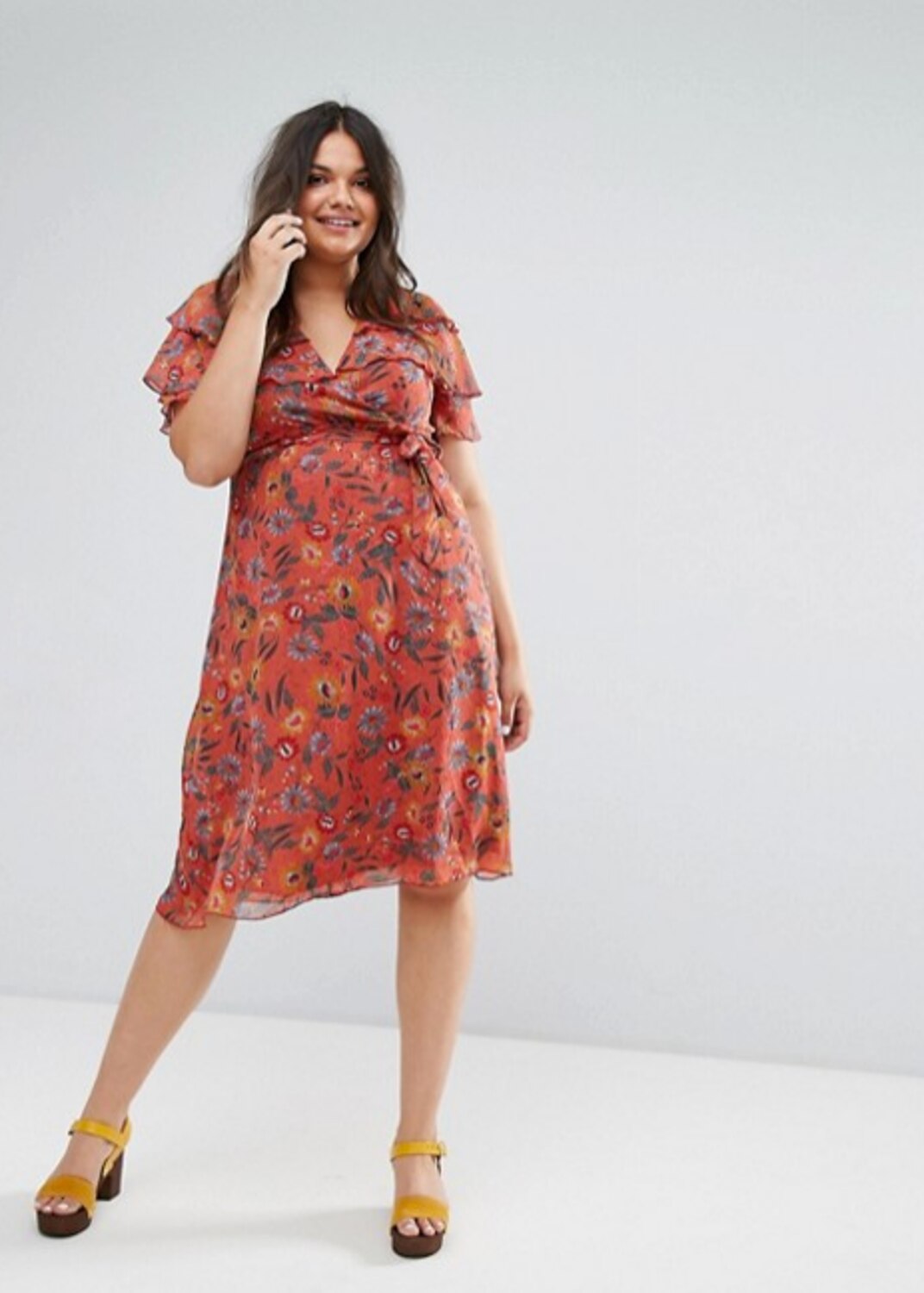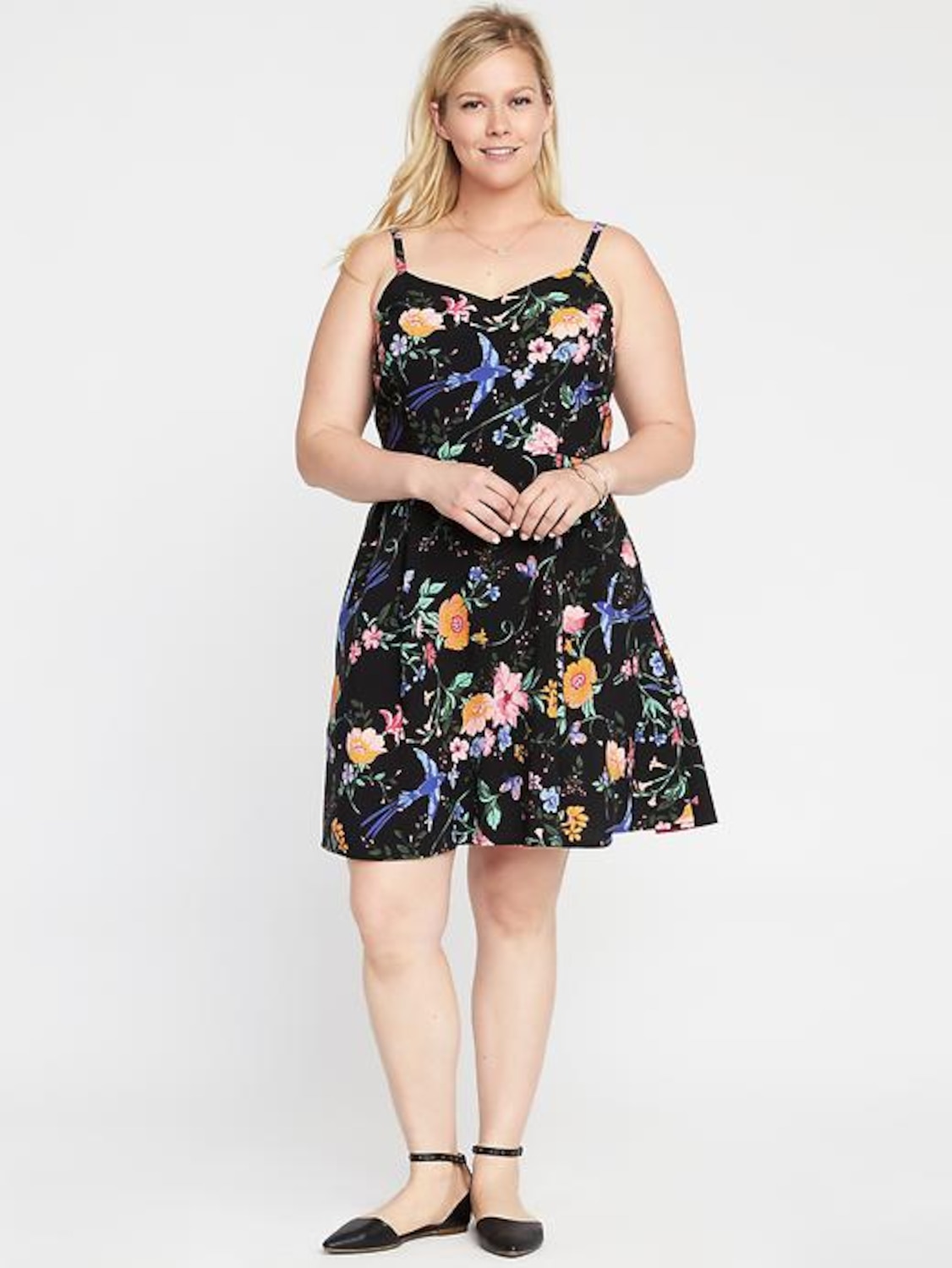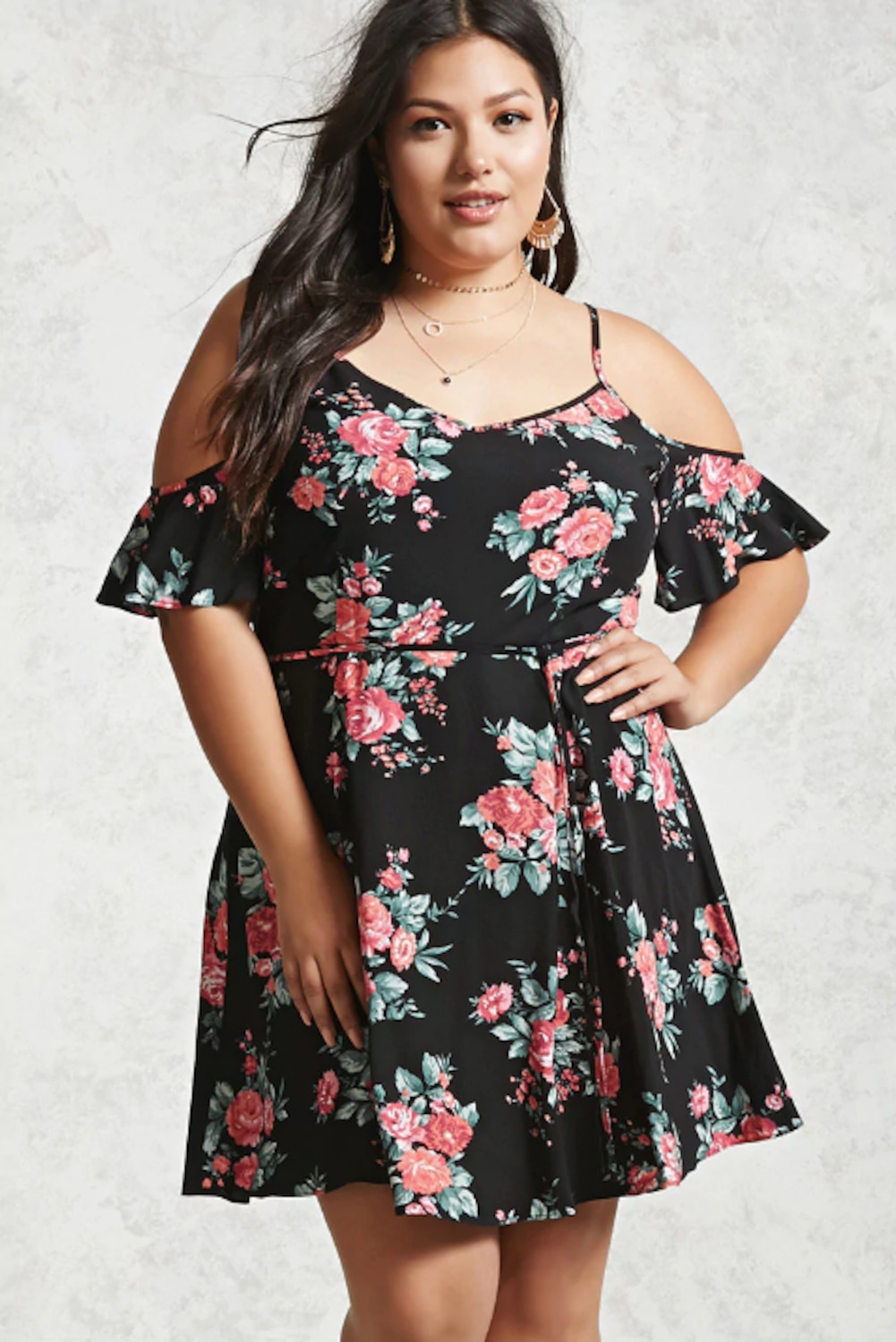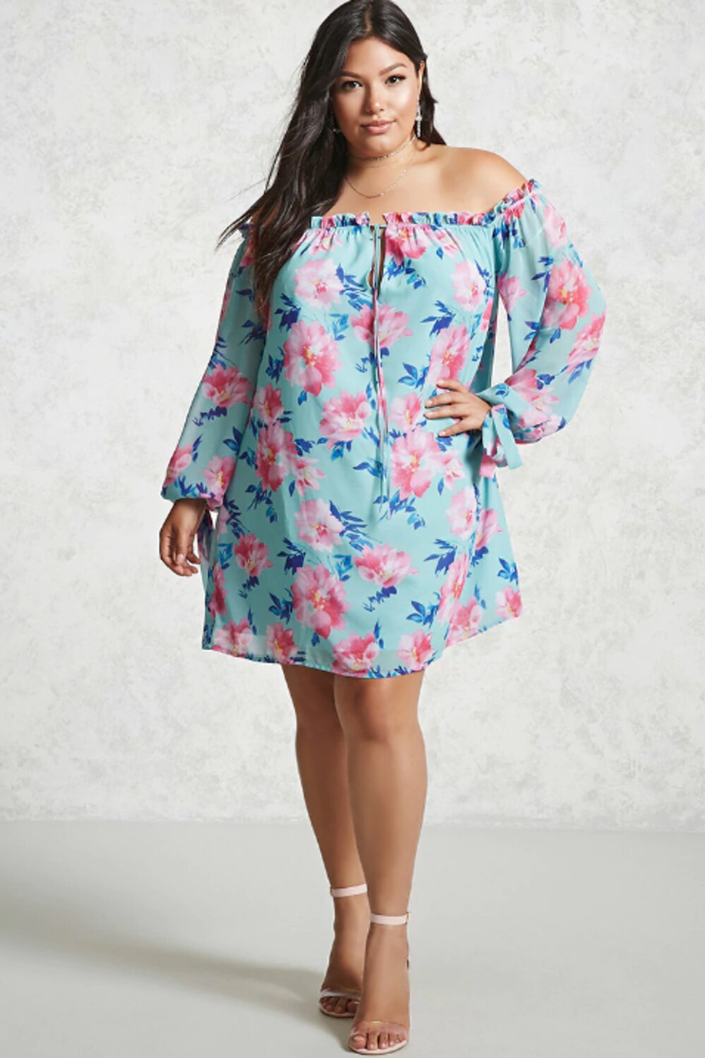 For a trendy take on summer florals, try a dress with an off-the-shoulder neckline.