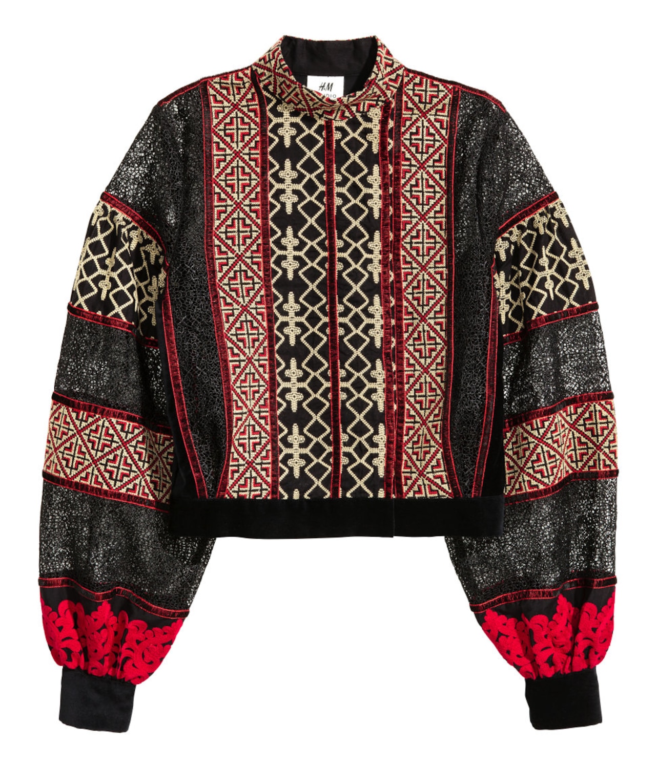 Embroidered velvet jacket, $149, hm.com/ca