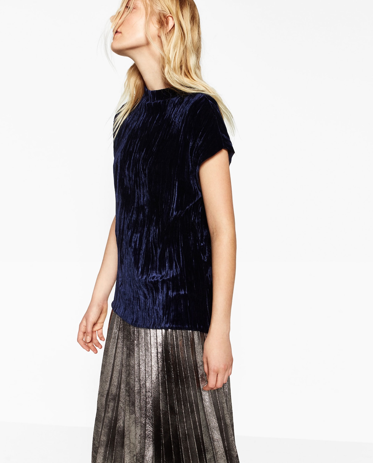 Crushed velvet top, $26, zara.com.